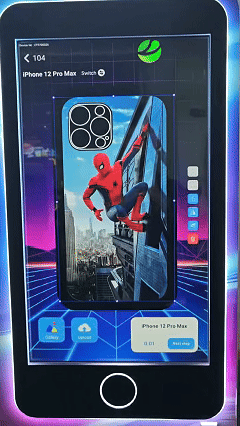 Pick your phone model and upload your custom design on the touchscreen.
